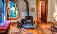 Living room with woodstove. Dining room. Kitchen. Three bedrooms-two with queen beds, and one with two single beds. One full bathroom with pedestal sink, clawfoot tub and separate shower; one half-bathroom with toilet and sink. Outside sitting area. The Gardener's Cottage is located near the entrance to the property and is about 800 feet from the lake, down a wooded path, to a lakefront sitting area with dock. Available year-round.