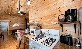 Located in the Lodge Building. Situated about 300 feet from the lake, which is visible through the trees. Longfellow (First row of photos below) offers a living/dining room with a cast iron gas fireplace and kitchen. Two bedrooms - one with king bed, one with two single beds. Full bathroom with a bathtub/shower combination. Osgood (Second row of photo below) offers one large room that contains a sleeping area with a queen bed, living and dining areas, and a small kitchen. Full bathroom with shower (no tub). Both have an east-facing covered deck with a lake view in the distance through the trees. Note - Longfellow joined with Osgood sleeps 6.